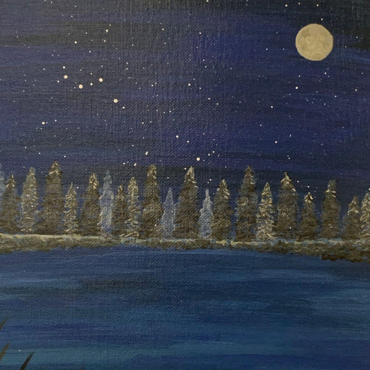 Night Vision on the Lake, Landscape Art, Original Painting, 9 x 12