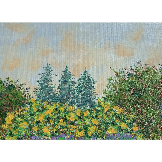 Mountains Trees and Wildflowers Original Artwork, Acrylic Painting, Beautiful Colors, Artist Signed, 9 x 12, Unframed