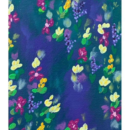 Purple Scene Flowers Multi-Color Floral Original Painting - 5" x 7" Acrylic