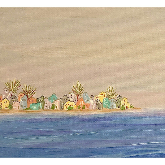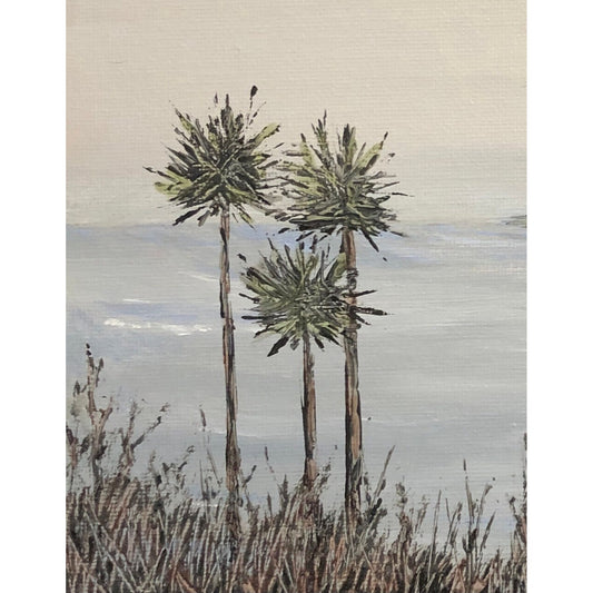 Quietude Original 8 x 10 Acrylic Painting, Seascape, Ocean, Palm Trees, Signed