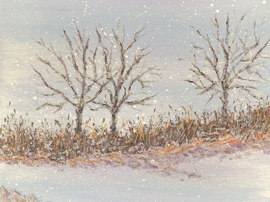 Snow Fall - Acrylic Wintertime Landscape Painting by Deb Bossert Artworks, 8x10"