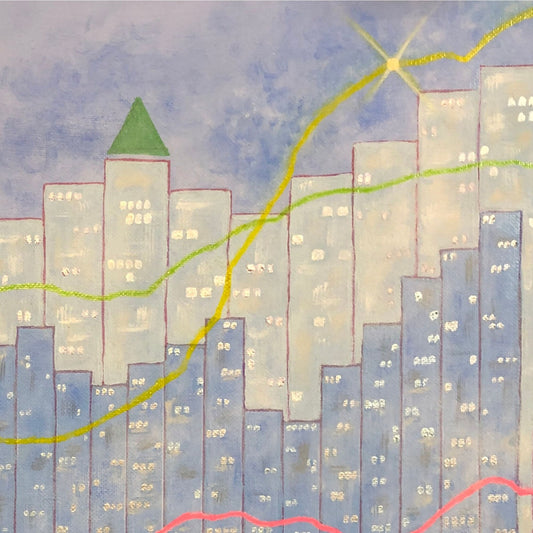 Stock Market Landscape Original Acrylic Painting, 11 x 14" Signed By Artist