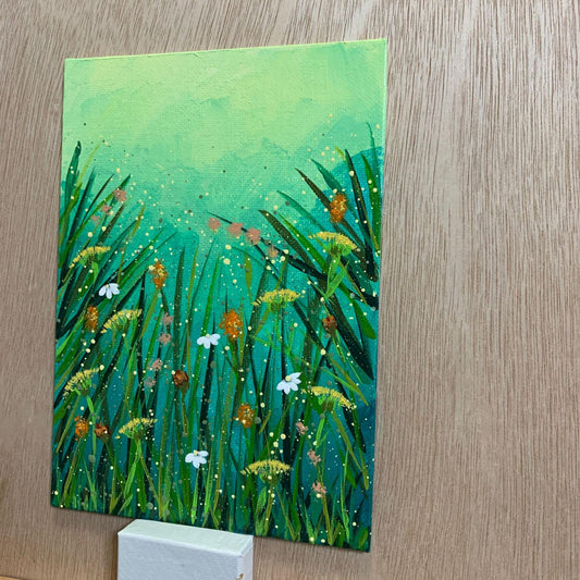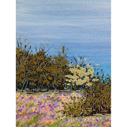 Sunny Field of Wildflowers Original Acrylic Painting With Beautiful Colors, Artist Signed, 5 x 7, Unframed