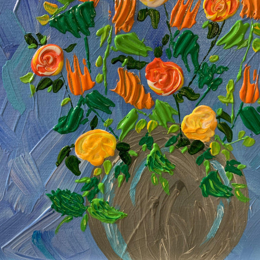 Sunny Flowers in a Vase, Abstract Floral Painting, 8" x 10" Signed