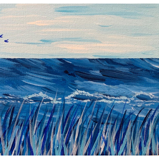 Beach Blues, Original Acrylic Painting, Beautiful Colors, Artist Signed, 5 x 7, Unframed