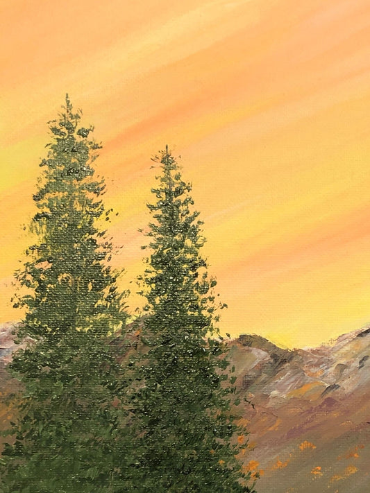 Aurora Mountain Sunrise Acrylic Painting by Deb Bossert Artworks, 5 x 7, Signed