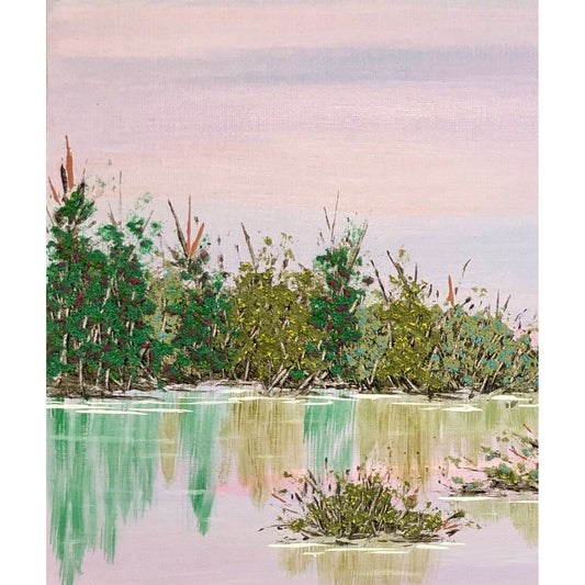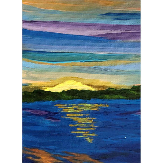 At Peace by the Lake, Original Acrylic Painting, 5 x 7, Artist Signed