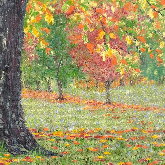 Falling into Autumn, 9 x 12 Acrylic Painting, Fall Theme Landscape Artwork
