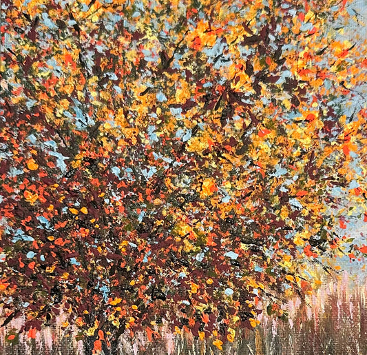 Fall Nature Theme Acrylic Painting Titled "Autumn Leaves" - 8" x 8" Original Artwork