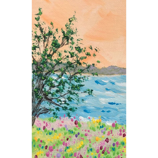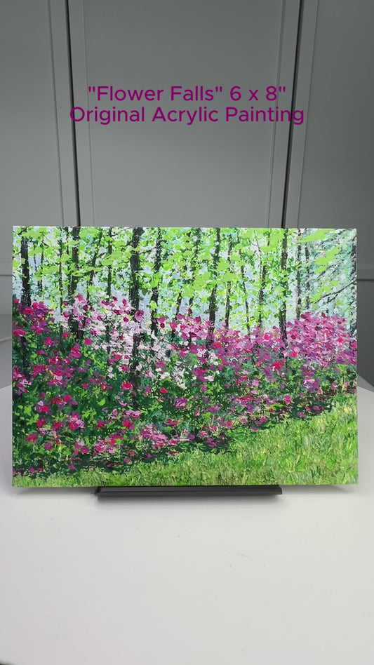 Flower Falls Vibrant Forest & Floral Design Acrylic Painting Unframed 6" x 8"