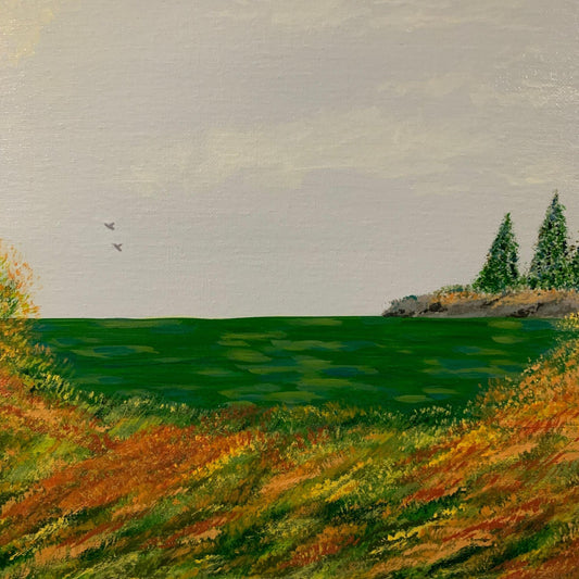 Fall Lake Escape, Original Acrylic Painting, 12 x 12