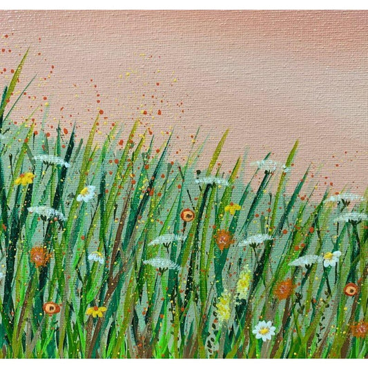 Field of Wildflowers at Sunrise Original Acrylic Painting, 11 x 14, Signed