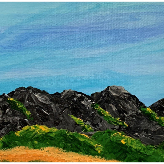 Fall Field Mountain Winter 6 x 6 Acrylic Painting, Artist Signed