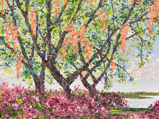 Mossy Oaks - Acrylic Nature Landscape Painting by Deb Bossert Artworks, 8 x 8
