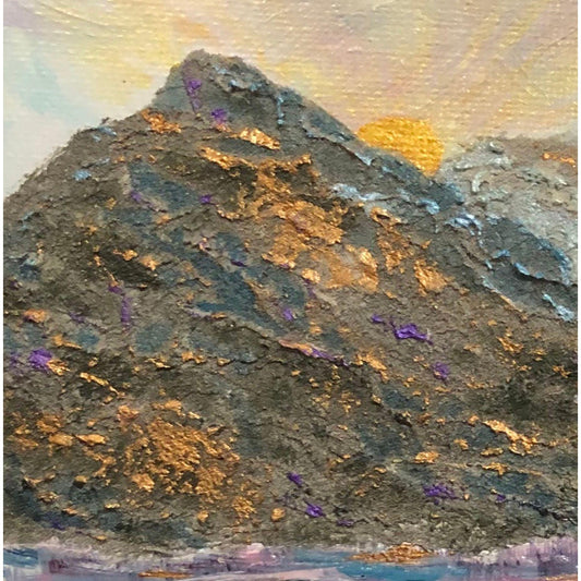 Mountain Sunrise Acrylic Painting, 8 x 8 Landscape, Signed Art, Original Artwork