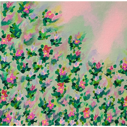 Magenta and Pink Wildflowers Painting, Original Artwork, Acrylic, Abstract Design, 9 x 12, Unframed