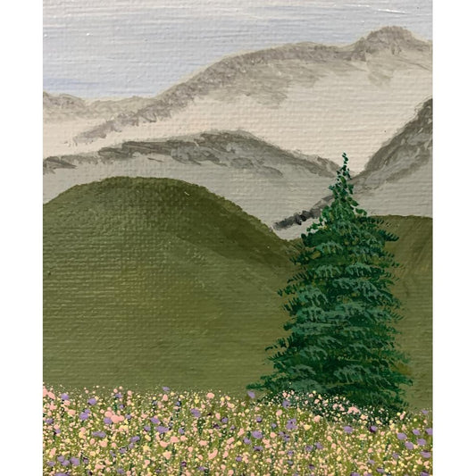 Mountains and Wildflowers Original Acrylic Painting, 5" x 7" - Signed