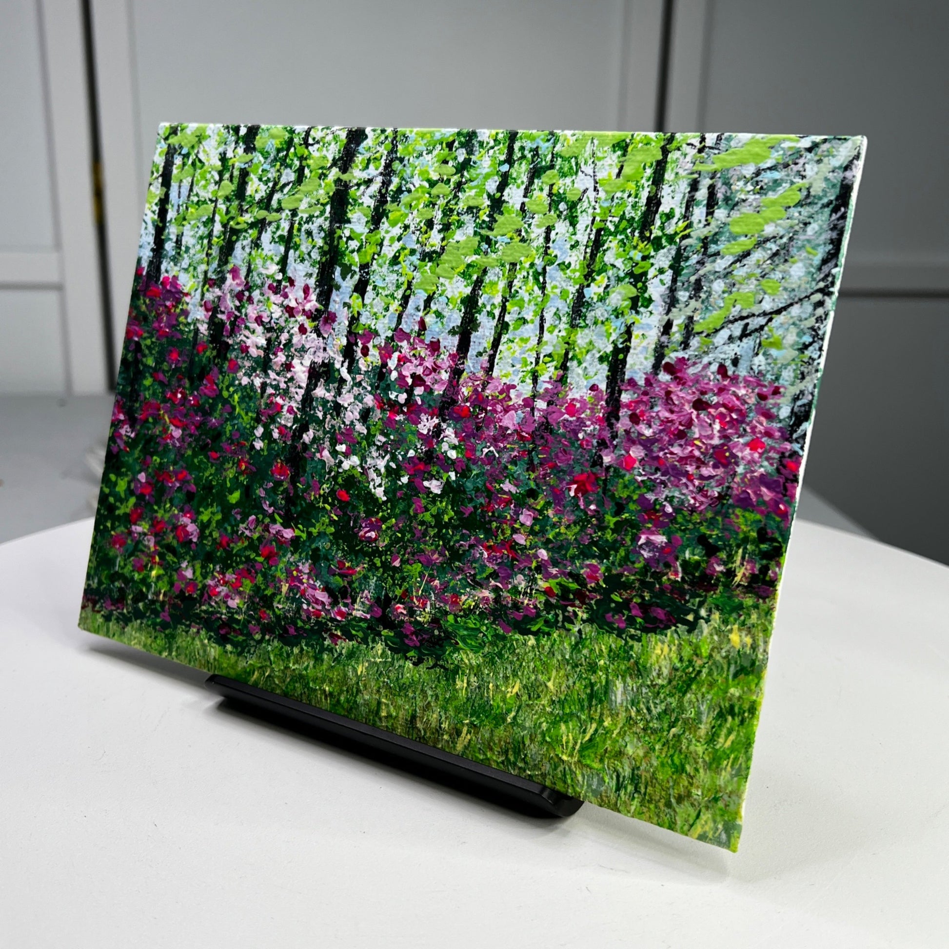 Flower Falls Vibrant Forest & Floral Design Acrylic Painting Unframed 6" x 8"
