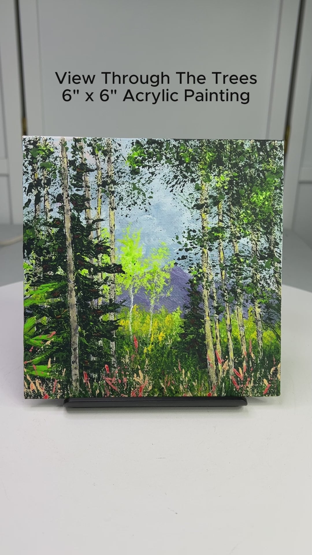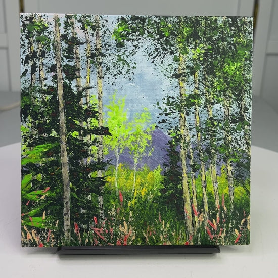 View Through The Trees Acrylic Painting On Canvas 6"x6" Original Art